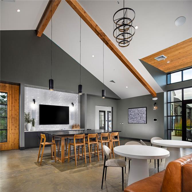 Distinguished by its onsite, professionally managed community farm and equestrian arena, the clubhouse fosters a strong connection between residents and the agrarian character of the region. The 8,840-square-foot residential community center is thoughtfully sited on a beautifully manicured five-acre property that also features pickleball, basketball, and volleyball courts, a soccer field, and a resort-style pool.