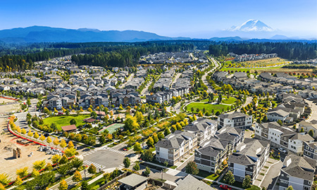 A large portion of the site has been preserved as natural open space, and developed areas are defined by natural features of the topography to create distinct enclaves that surround the town center. The enclaves are connected by a network of forested trails to encourage walkability and non-vehicular circulation throughout the charming, small town character of Ten Trails.