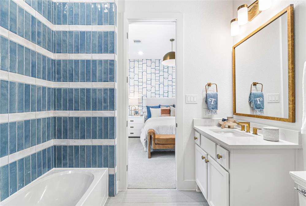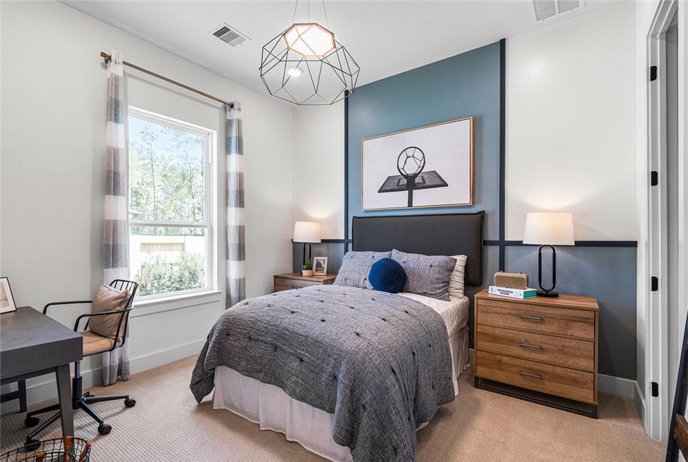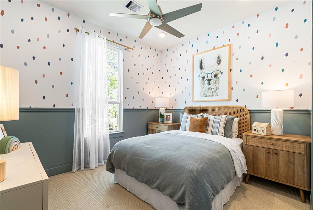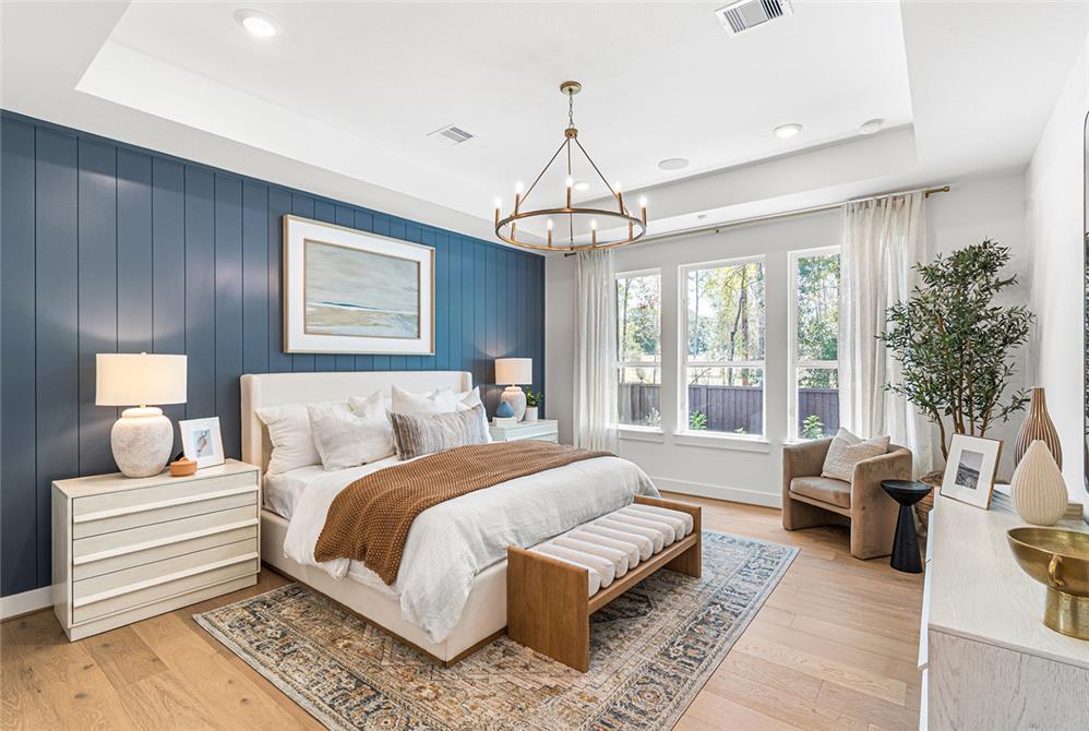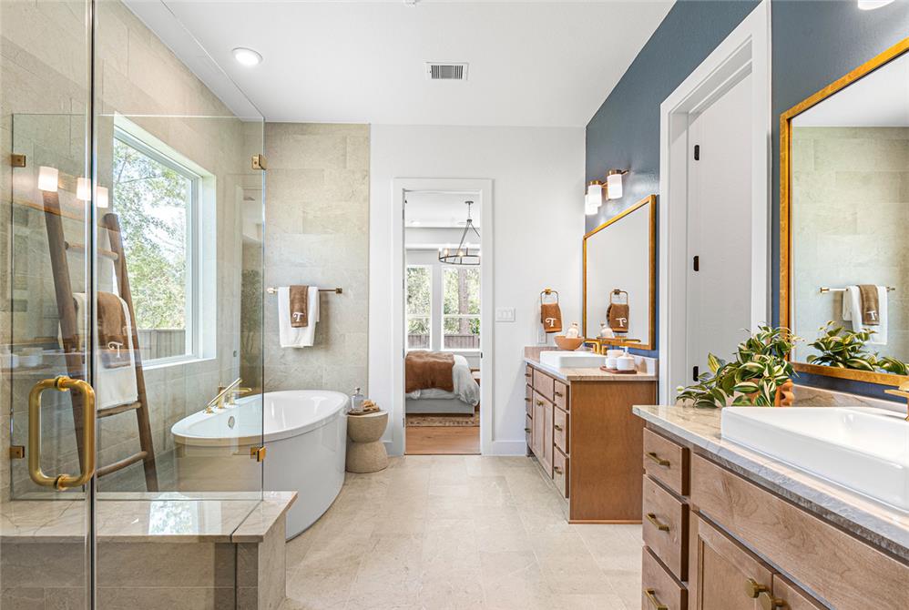 DAHLIN provided interior design for the Fenton Classic model, shaping a warm, livable environment that reflects both the scale of the home and its natural surroundings. The interiors balance openness and comfort, with living, dining, and kitchen spaces flowing together under high ceilings and exposed wood elements. A soft, neutral palette is paired with warm wood tones, tailored millwork, and moments of pattern and color to create depth without overwhelming the space.